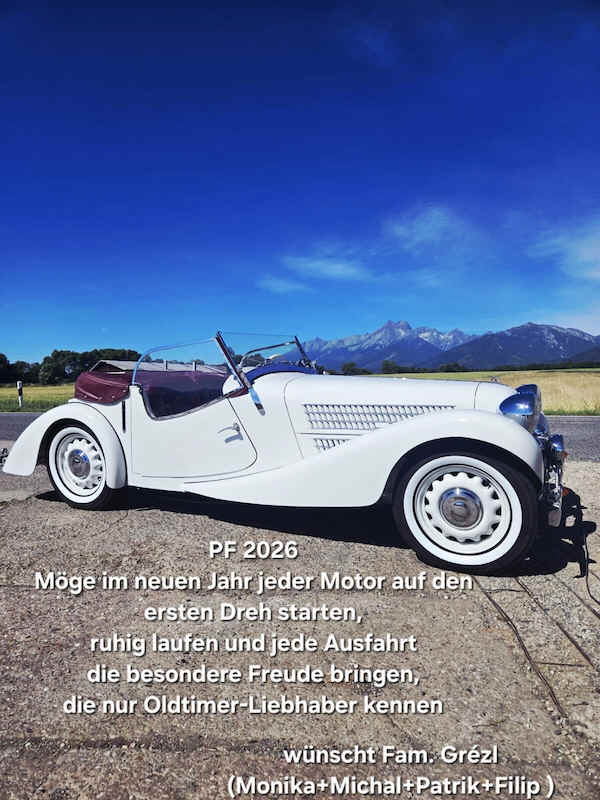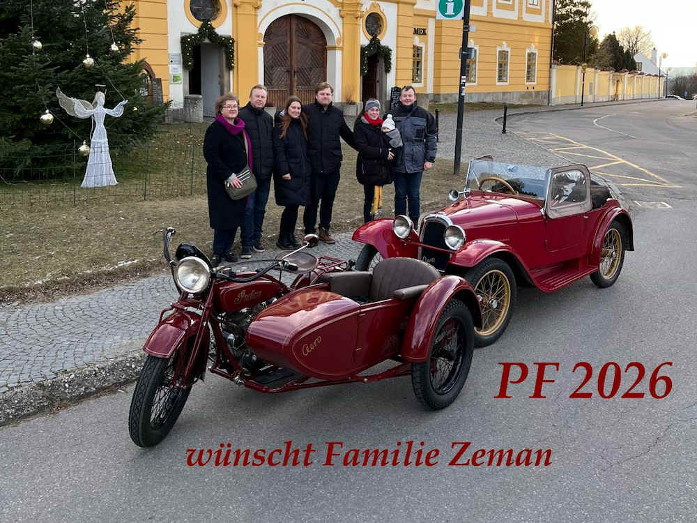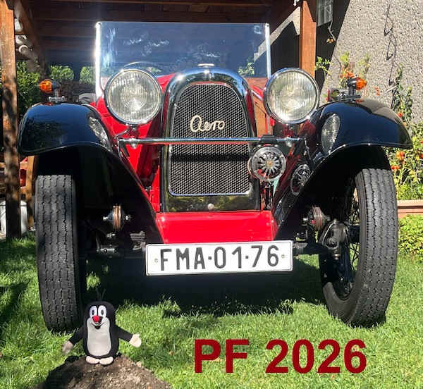 Aero 30 Kabriolett am Grab von Josef Sodomka im Juji 2025 Im Zusammenhang mit 130 Jahre Firmengeschichte Sodomka und dem 30. Treffen der Sodomka-Freunde wurde Michael Strauch die Ehre zuteil, mit seinem Aero 30 Kabriolett von 1937 das Familiengrab im Friedhof von Vysoke Myto zu besuchen.