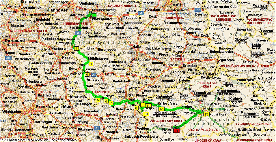 von Bilá Hora (Stadtteil von Pilsen) bis Braunschweig (ca. 530