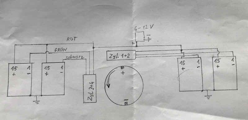 elektronischer Zündanlage für den Vierzylinder im Testbetrieb