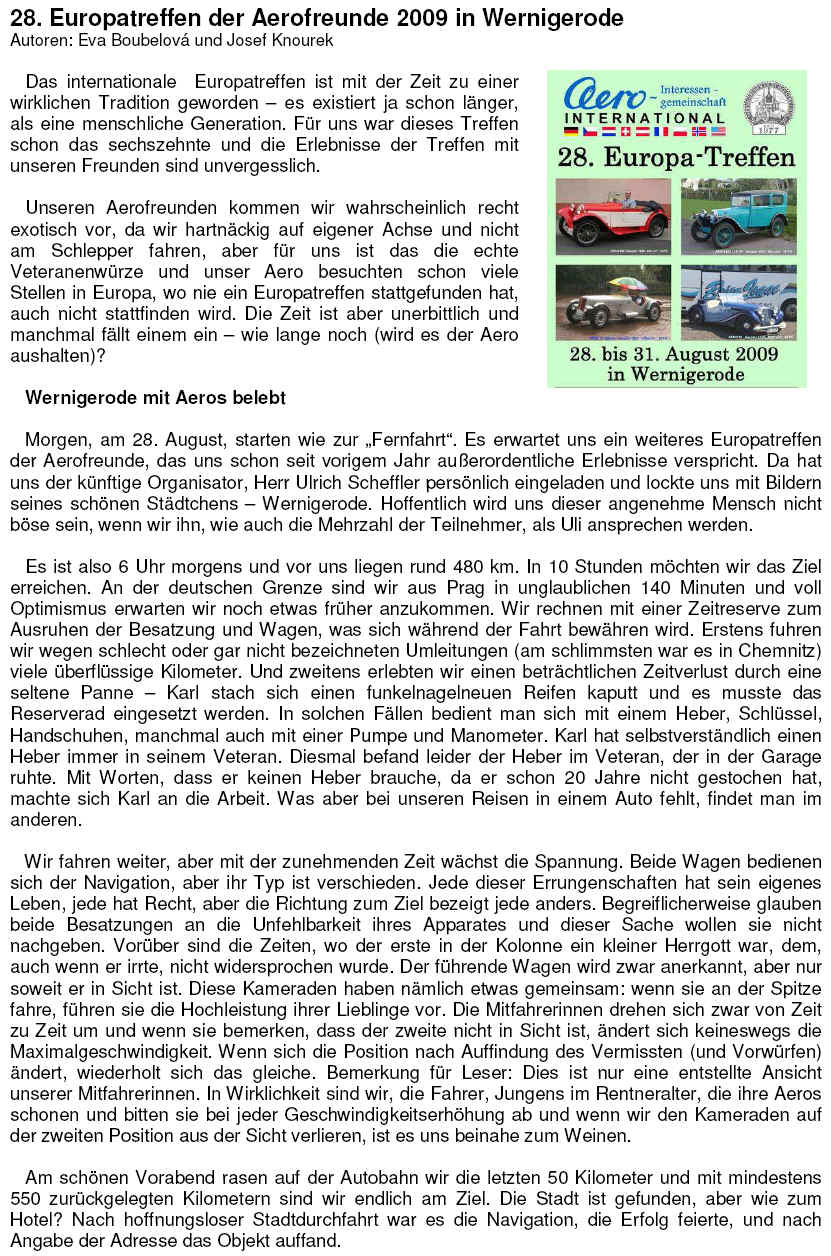 28. Europatreffen 2009 - Bericht von Eva Boubelova und Josef Knourek