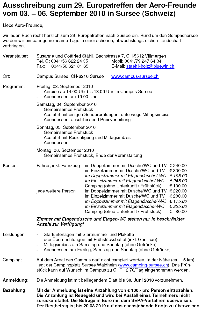3. – 6. září 2010 v Sursee, Švýcarsko