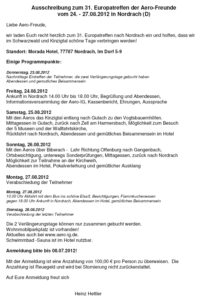 31. Europatreffen 2012 - Ausschreibung/Einladung mit Programm