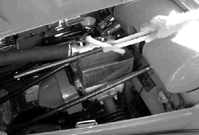 klassische Ansicht. Beide Kapoten (Motorhauben) offen und aus dem Motorraum ragten nur die