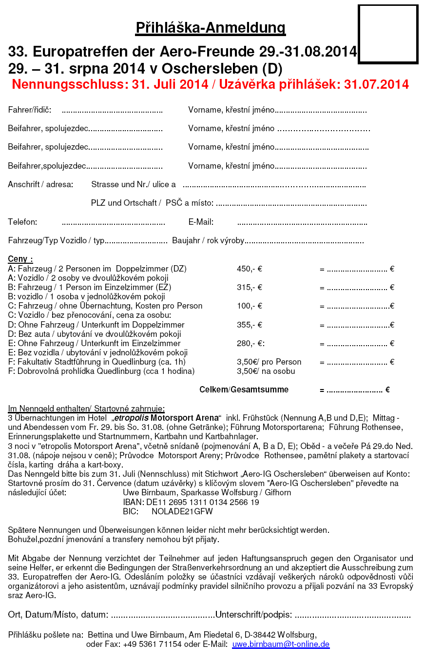 Hier kann die Anmeldung zum Ausdrucken als PDF-Datei (20 KB) auf den PC geladen in Deutsch in Tschechisch