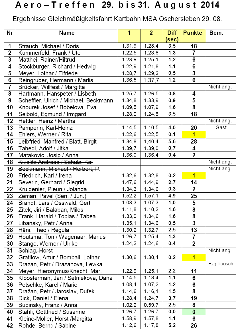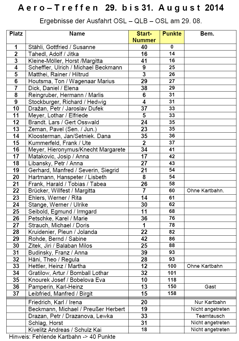 33. Europatreffen 2014 - Ergebnisliste und Gleichmäßigkeitsfahrt