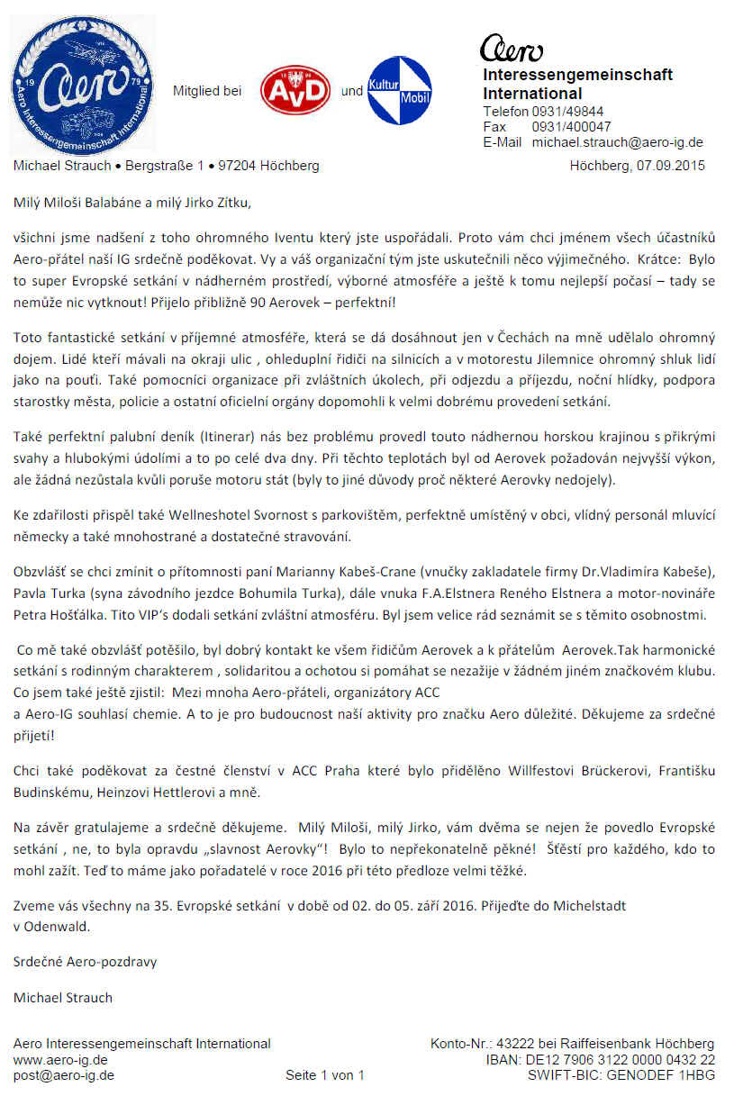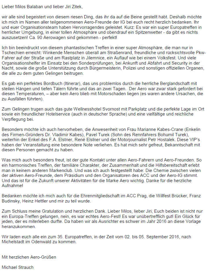 von Michael auf tschechisch, das alles freut alle Organisatoren