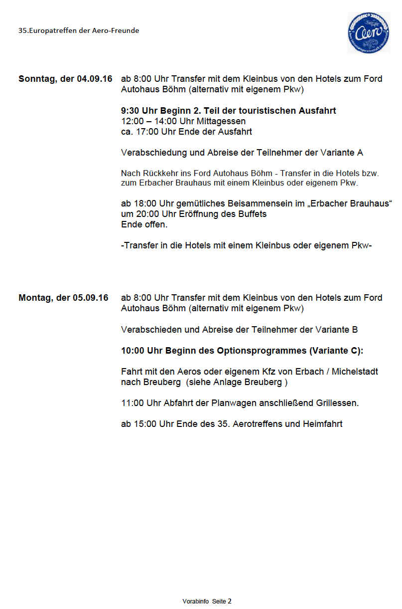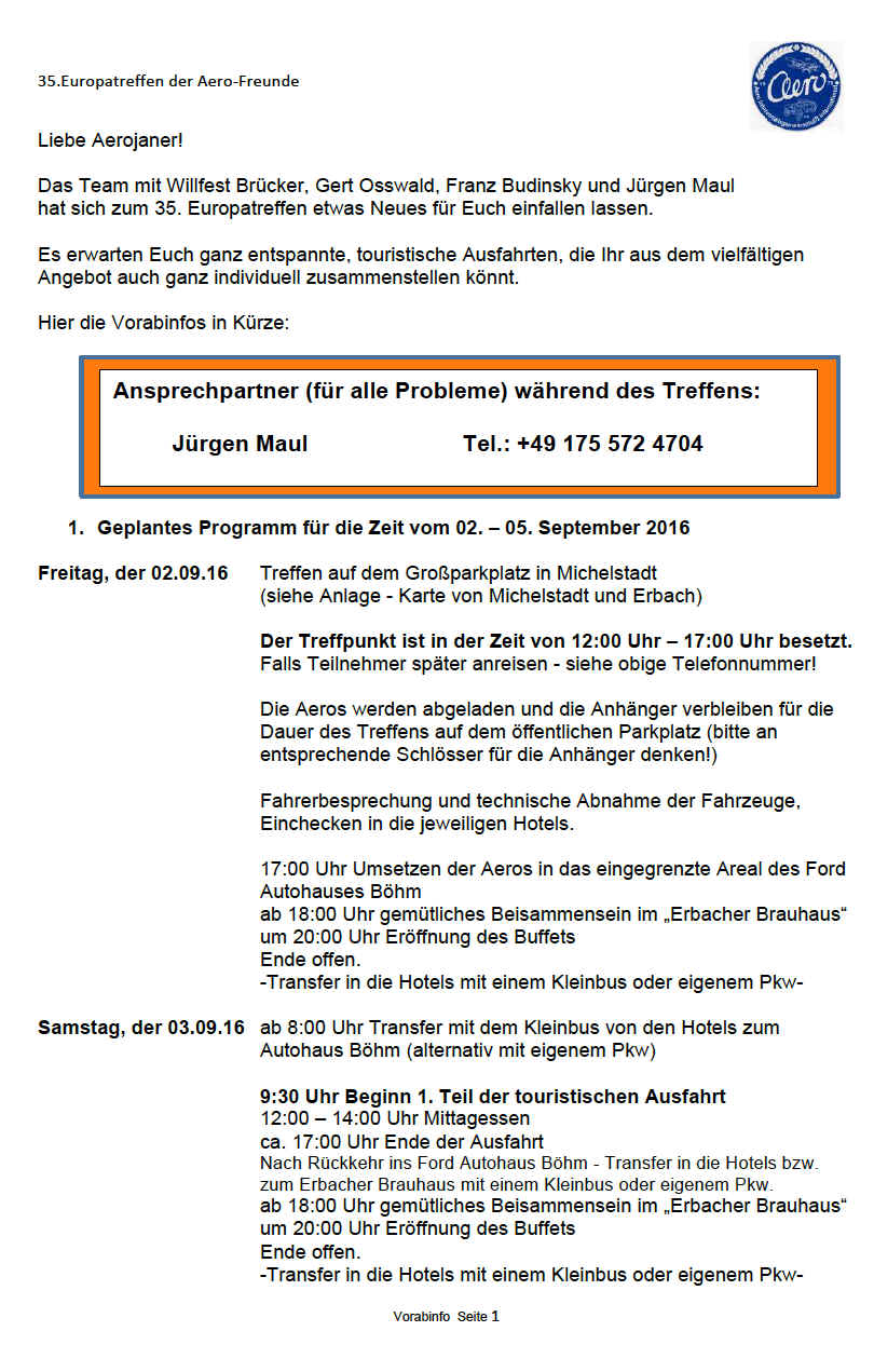 35. Europatreffen 2016 - Hinweise zum Programm und Anreise
