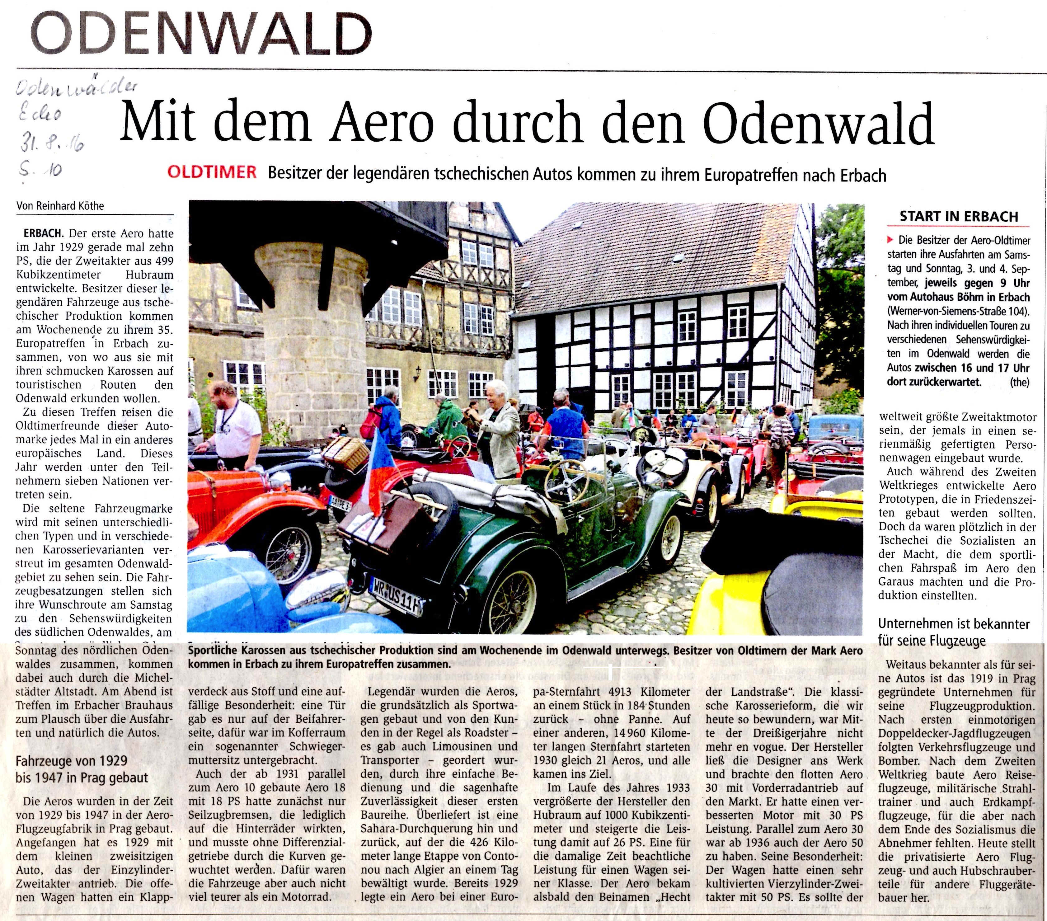 Vorbericht im Odenwälder Echo vom 31.08.2016
