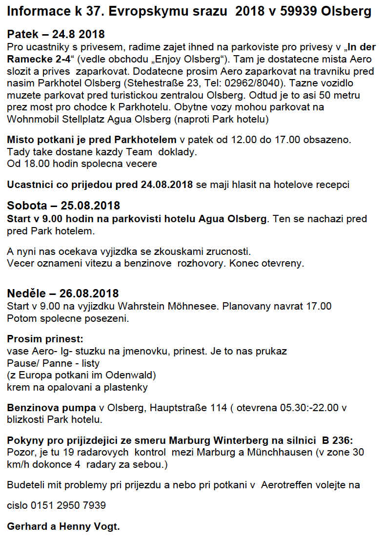 37. Europatreffen 2018 - Informace Pobyt