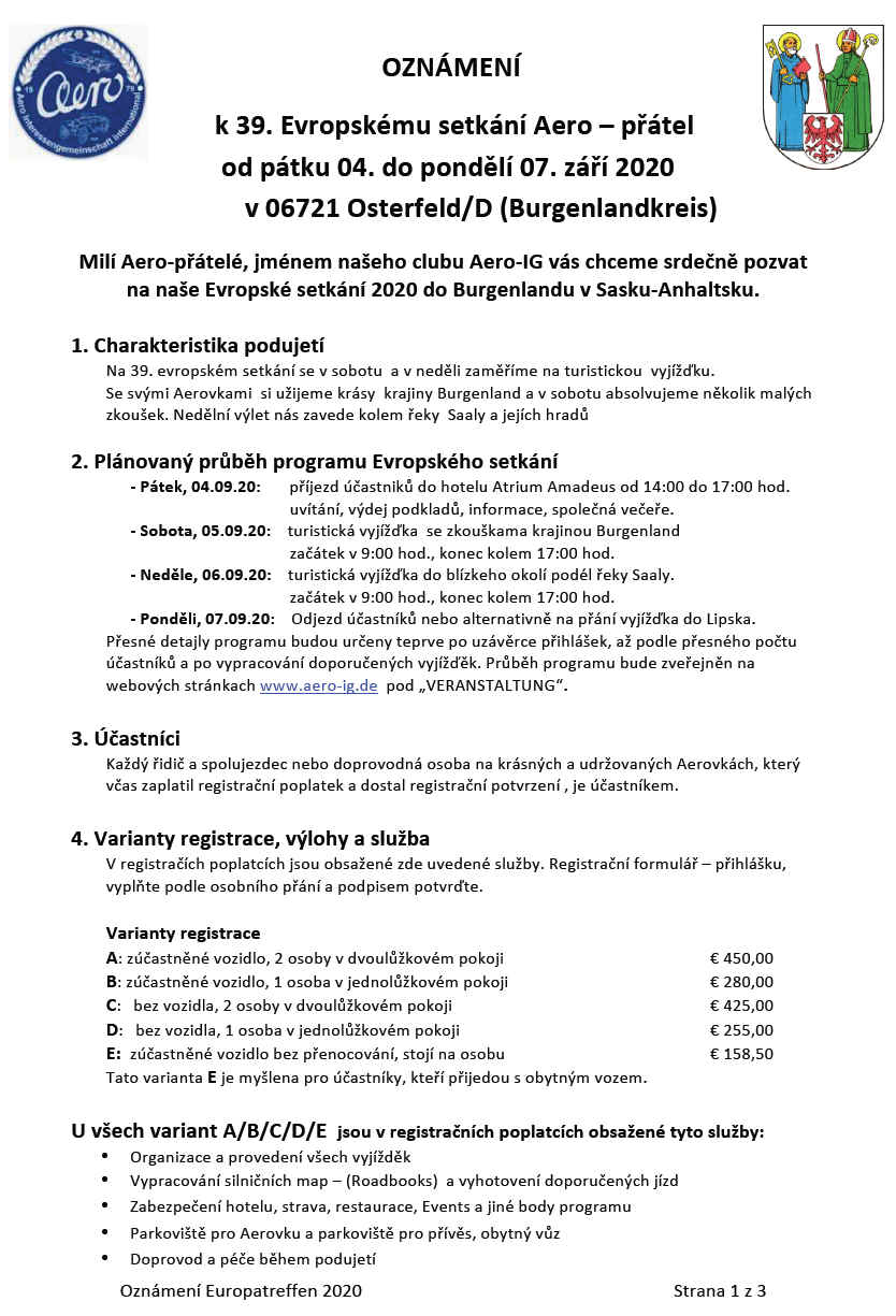 39. Europatreffen 2020 - Oznámeni + Přihláška