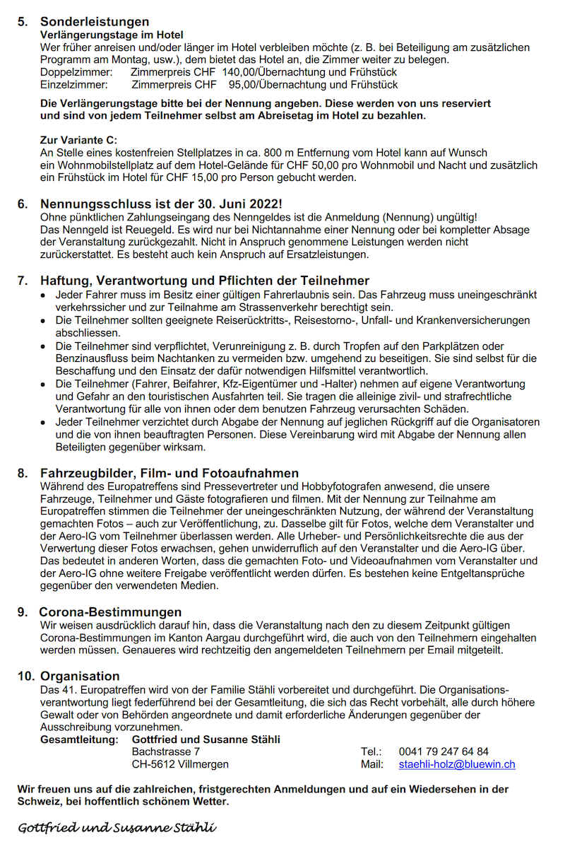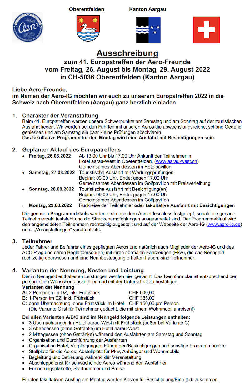 41. Europatreffen 2022 - Anmeldung und Nennung