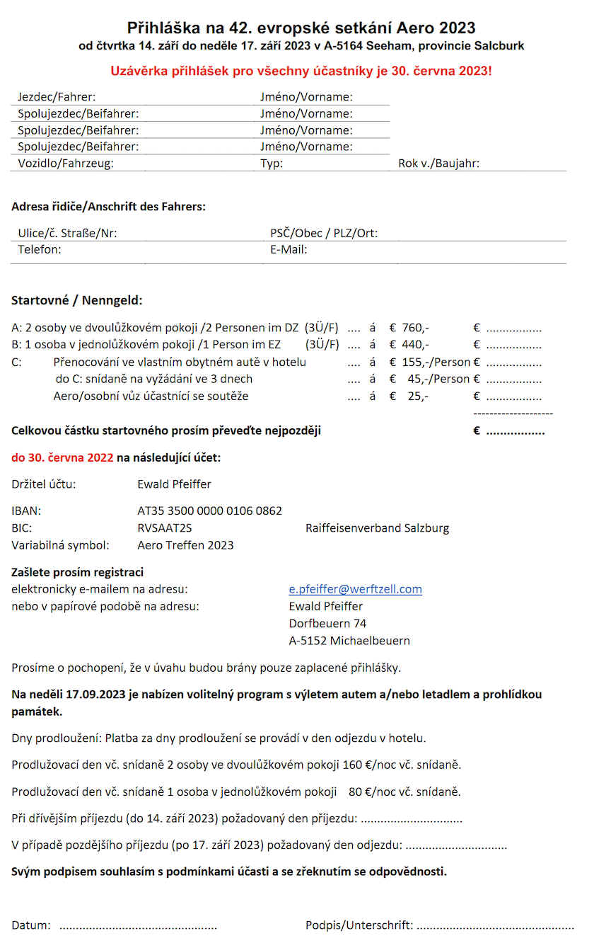 42. Europatreffen 2023 - Propozice a Prihlaska