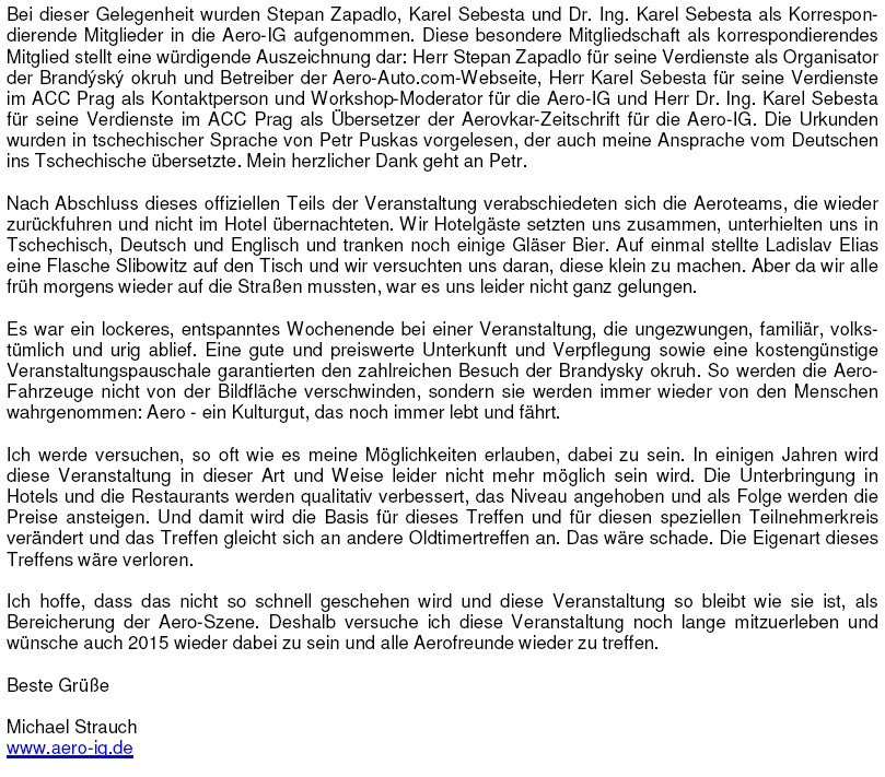 gathering of owners and fans of Aero cars. We are going to celebrate the 80th