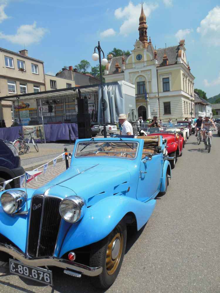 Orlické hory mit der Pause am Marktplatz von Brandys nad Orlici statt, wo